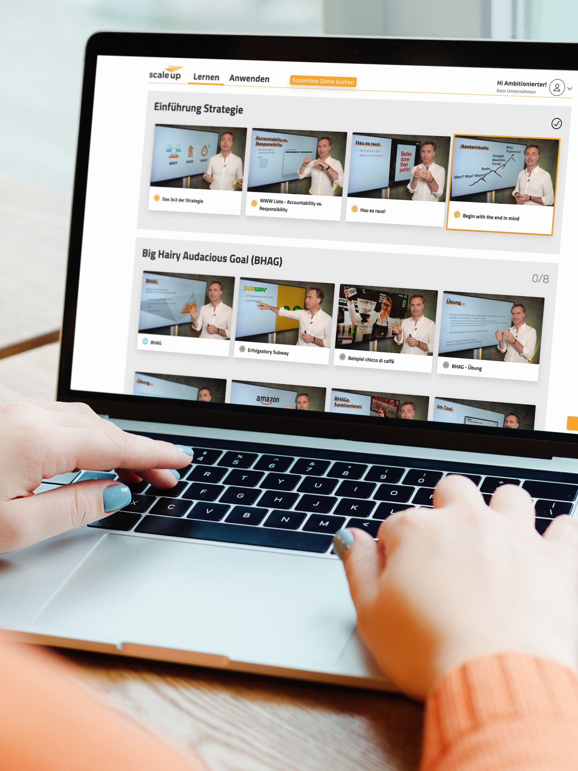 Unser Online-Kurs „scale up Starter“ ist perfekt für dich geeignet, wenn du dir noch keinen On-Site-Coach leisten möchtest oder dir die scale up Methode selbst beibringen und diese eigenverantwortlich anwenden möchtest.